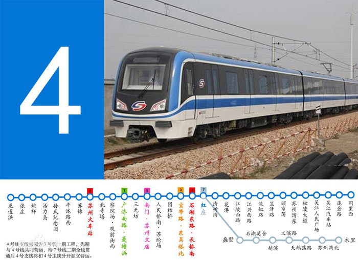 蘇州軌道交通4號線,南北走向,連接相城區(qū)、姑蘇區(qū)、吳中區(qū)和吳江區(qū),是蘇州城市發(fā)展的一條骨干線路。...